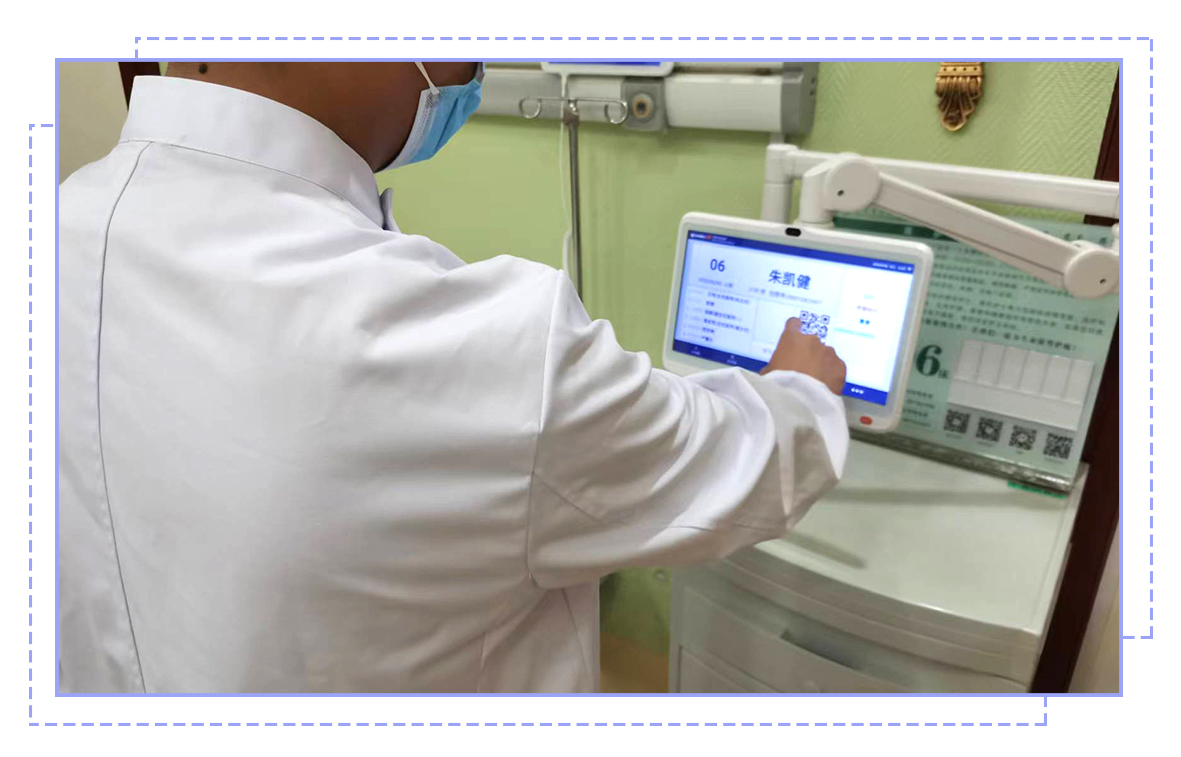 患者床頭屏是一個(gè)電子化的床頭卡,它結(jié)合了傳統(tǒng)的床頭呼叫器,患者需要幫助時(shí)可一鍵呼叫,并且它還可以實(shí)時(shí)更新患者數(shù)據(jù)顯示,有了它護(hù)士每日可快速完成三查七對的護(hù)理工作。