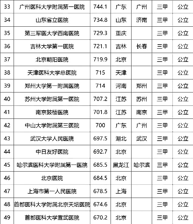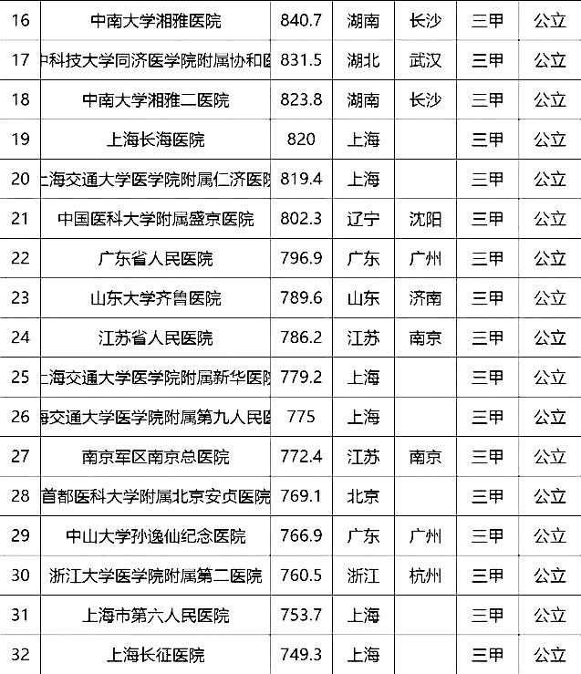 “100強”榜單中,入圍最多的三個省市分別是北京(16家醫(yī)院)、上海(13家醫(yī)院)、廣東(9家)。“100強”共覆蓋32個城市,包括4個直轄市(36家醫(yī)院)、23個省會城市(59家醫(yī)院)、5個地級市(5家醫(yī)院)??傮w看,城市的醫(yī)院平均得分和上榜機構(gòu)數(shù)有一定的相關(guān)性,上榜機構(gòu)數(shù)多的城市一般得分均值較高,說明這些城市醫(yī)院整體實力較高。
