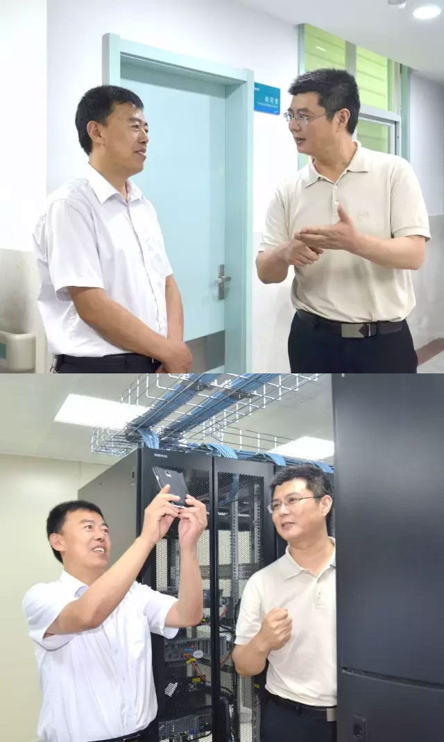 泰安電信公司總經(jīng)理侯啟敬在參觀我院機(jī)房時,對線向的布局贊不絕口,并用手機(jī)拍照